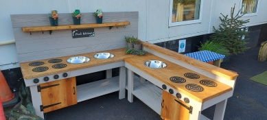 We have a fantastic new mud kitchen for the children and they love it!!!!
